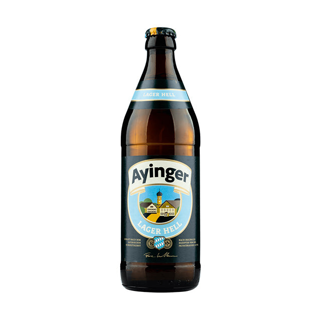 Ayinger Lager Hell es la típica cerveza de consumo diario en Baviera. Junto con la cerveza de trigo, este estilo Munich Helles es el más famoso del sur de Baviera. Nuestro clásico con receta refinada se caracteriza por un hermoso tono dorado claro. El equilibrio entre la malta ligera y un toque de lúpulo, la convierte en una experiencia única y de gran tomabilidad. Una cerveza con cuerpo, fresca y sabrosa!